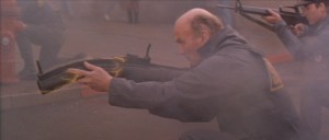 But Nuclear Man won’t be stopped. He zaps the arriving police and firemen as well as a SWAT team, which leads to hands-down the most idiotic shot in the whole movie, which is saying something. Or maybe it’s just me. But see, this guy right here…
