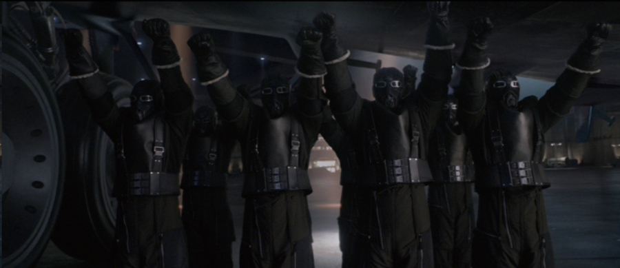 Meanwhile, the Skull is preparing to take off on his mission to destroy New York and gives a little pep talk to his troops, who shout, “Hail, Hydra!”